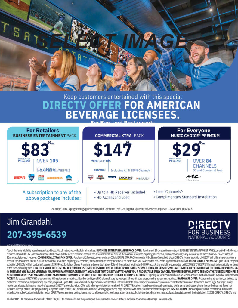 DIRECTV FOR BUSINESS and American Beverage Licensees are excited to provide an exclusive program for ABL members.